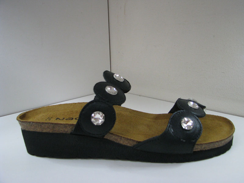1 inch rubber sole. Comfort suede insole with arch support. European whole sizes. Medium widths. Black leather with crystal rhinestones.