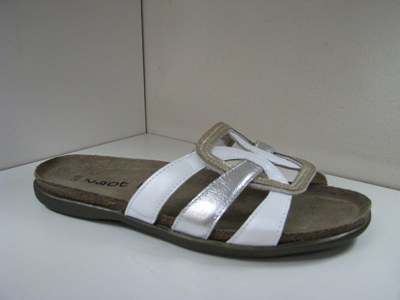1 inch rubber sole. Suede insole with arch support. Slide. Medium widths. Whole European sizes. White, silver and gold leather.