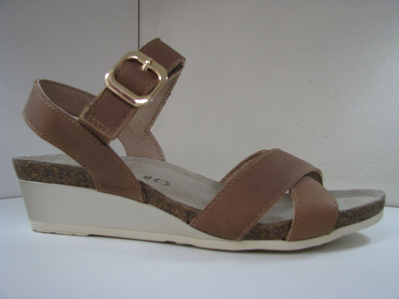2 inch wedge. Suede comfort insole with arch support.. Rubber sole. Velcro strap. European whole sizes. Medium widths. Latte brown leather