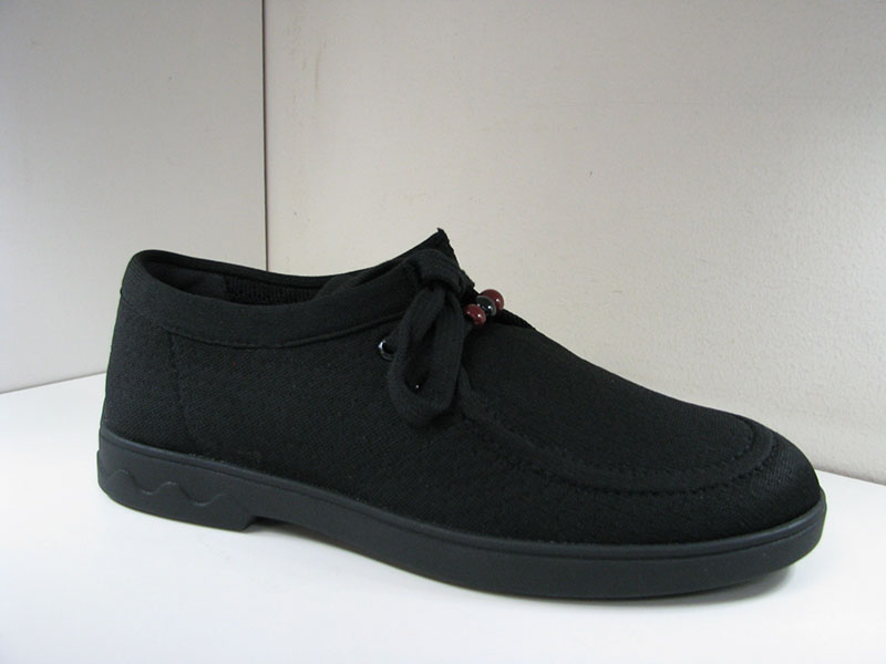1 inch heel. Rubber walking sole. Fabric upper. Tie . Comfort insole. Whole & half sizes. Medium & narrow widths. Black.